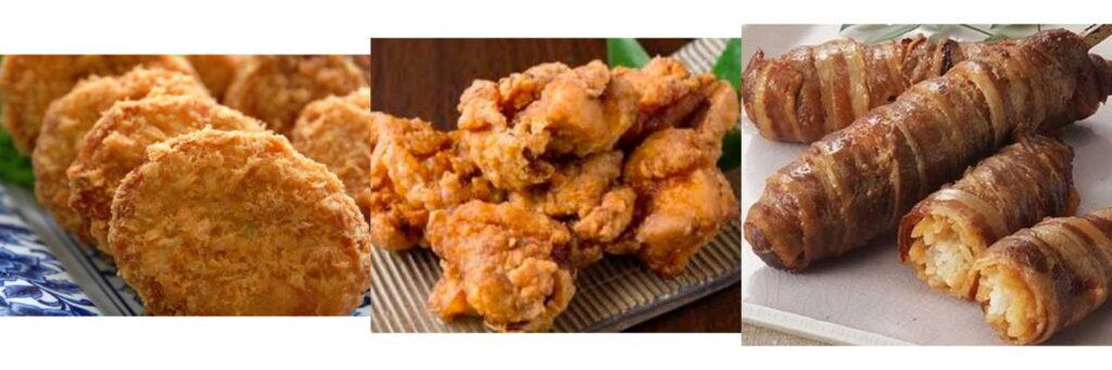 焼鳥 200円 / 牛タンつくね 400円 / 鶏もも唐揚げ 400円 / ハーブ入り炙りフランク 400円 / ふりふりポテト 500円 / 駿河やきそば 500円 / 肉巻おにぎり 600円 / チュロス 400円 / ソフトドリンク 200円 / ハイボール 500円 / 缶ビール 500円