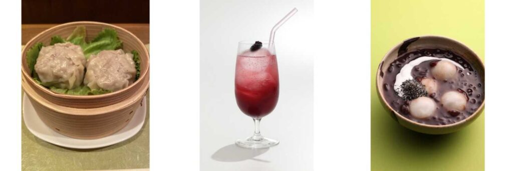 すばらしいおしるこ 500円 / 桑の実ソーダ 500円 / スパークリングワイン 600円