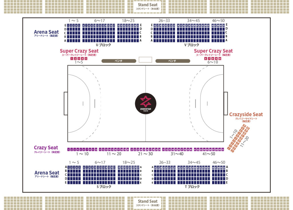 場所:会場3階 アリーナシートSブロック脇(下図左下「Arena Seat」と文字があるあたり)