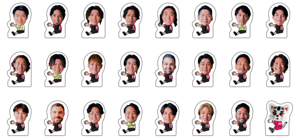 - 全23種(1大山翔伍、3部井久アダム勇樹、6高橋颯汰、7細川智晃、8元木博紀、9趙顯章、12矢村裕斗、13中村翼、17泉本心、21岩下祐太、23ピサノライアン海夏人、24宮本辰弥、27玉川裕康、32橋本明雄、33信太弘樹、35小山哲也、44蔦谷大雅、46バティスト・ボンフォン、55伊禮雅太、66甲斐昭人、77東江雄斗、84柴山裕貴博、88東長濱秀希)